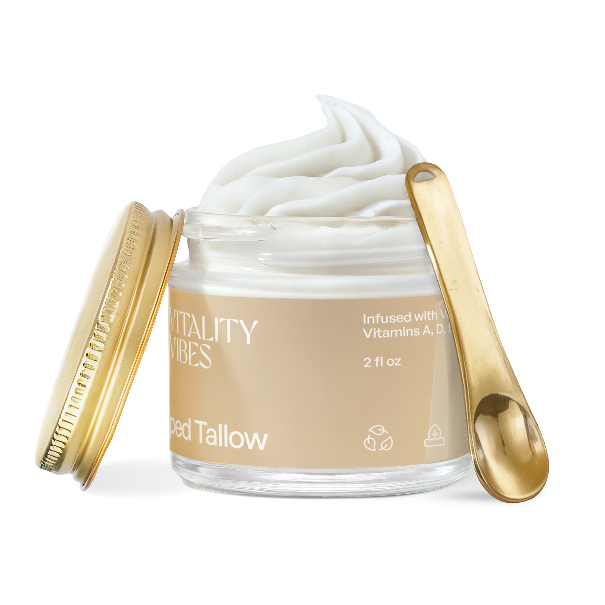 Grass-Fed Tallow – Rendered from the fat of grass-fed beef, this animal fat is rich in skin-compatible fatty acids and vitamins A, D, E, and K, deeply nourishing and repairing the skin.