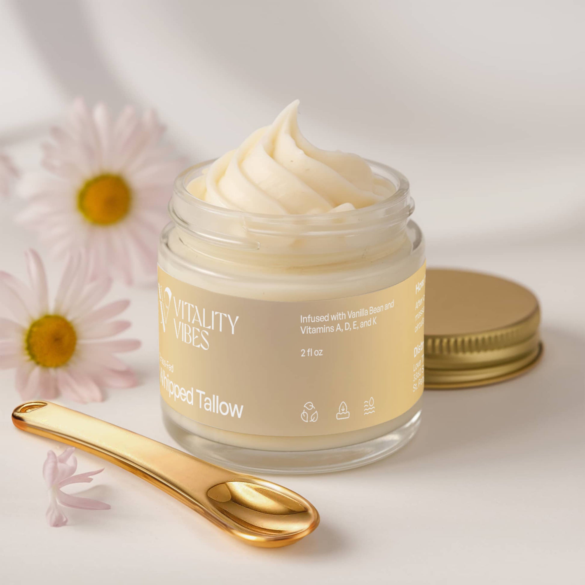 Experience the purity of nature with our Whipped Grass-Fed Tallow Balm with Vanilla Bean. Specially formulated with grass-fed tallow and infused with aromatic vanilla bean, this nourishing balm delivers deep hydration, soothes irritation, and promotes skin regeneration—all without synthetic additives.